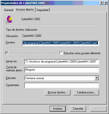 Para acceder a una Carpeta General distinta de la habitual, habremos de crear un acceso directo a CyberMAX, modificado para acceder a la Carpeta General alternativa.